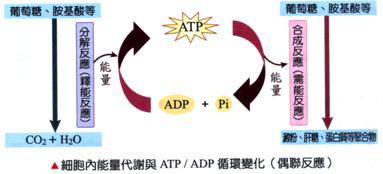 細胞的吸能/放能反應,需與ATP/ADP間的轉換互相配合,稱為偶聯反應。