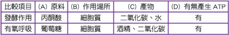 )18. 酒精發酵和乳酸發酵的比較: ( )19.