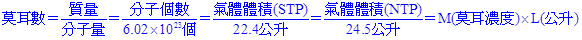 (2) 標準狀況(STP,1atm,0℃)時,任何氣體的體積皆為22.4公升。