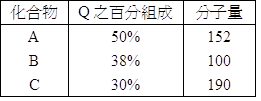 三、非選題 1. 下列五種定律,確立了原子與分子之概念,試回答下列各小題: (1) 【(A)質量守恆定律、(B)氣體反應體定律、(C)亞佛加厥假說、(D)倍比定律】為依據具體「實驗」而提出的學說。 (2) 【(E)定比定律】為依據「假設」而提出。 (3) 道耳頓提出之「原子說」,可說明的定律為【(A)質量守恆定律】、【(D)倍比定律】、【(E)定比定律】。 (4) 為了解釋【(B)氣體反應體積定律】定律,因而提出【C亞佛加厥假說】,因而建立了分子概念。 2. 按定比定律完成下列圖表,試寫出下列空格的答案:(原子量:Si=28) 【解析】:1克的H和8克的O組成(A),H:O= 3. 同溫同壓下,CO和CO2具有同數目的原子,則下列比值關係分別為若干?(均為CO:CO2) (1) 莫耳數比=【3:2】; (2) 分子量比=【7:11】; (3) 重量比=【21:22】; (4) 體積比=【3:2】。 【解析】:一個CO有2個原子,一個CO2有3個原子,當兩者的原子數目相同時, 4. A、B、C三種化合物均含有Q元素,經分析結果如附表,試求Q元素之原子量最大為__________。 【解答】:19 【解析】:化合物A中Q的質量=152x50%=152x0.5=76克。 5. 已知鈉的原子量為23.0,則: 【解答】:(1) 【解析】:(1) 鈉的原子量為23,表示1個鈉原子的質量為23 amu; 6. 已知甲烷分子式為 【解答】:(1) 【解析】:(1) 甲烷分子式為CH4,分子量為12+1x4~=16;1莫耳的CH4有16克; 7. 請依定比定律寫出如圖代號之答案:(原子量:C (1) (2) B的化學式為__________。 (3) C的化學式為__________。 (4) x的值為__________。 (5) y的值為__________。 【解答】:(1)H2O (2)CH4 (3)Al2O3 (4)3 (5)9 【解析】:(1) 化合物A由1克的H和8克的O相結成, 8. 在化學發展的過程中,有許多科學家貢獻良多,試由下列選項中選出正確者,並回答相關問題:(以下科學家請以代號作答)