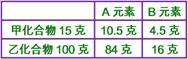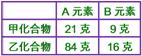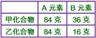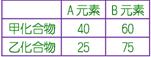 甲乙二化合物之組成元素均為A與B,其重量百分組成分別為:甲含40% A和60% B,乙含25% A和75% B,則依倍比定律,甲、乙中B元素重量比為何?