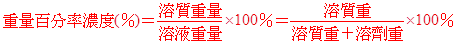 (三) 溶液的濃度: A. 重量百分率濃度:
