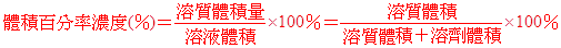 (1) 每100毫升溶液中,所含溶質的體積(毫升數),以百分比表示,稱為體積百分率濃度。