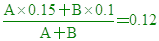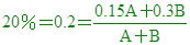 比重1.2,濃度為36.0%的氯化氫水溶液200毫升,含氯化氫質量_______克。 解答:86.4克 解析:溶液質量=體積x密度=200x1.2=240克。 例題8.將15%及10%的糖水混合成12%的溶液,則所取15%及10%糖水的重量比為何? 解答:(C) 解析: 例題9. 取90%的硫酸溶液100克,需加入30%的硫酸溶液______克,才能配製成70%的硫酸溶液? 解答:50克 解析:假設30%的溶液重量A克;則 例題10.欲以15%及30%兩種濃度的NaOH溶液,配成20%溶液,兩者需以何種重量比混合? 解答:2:1 解析:假設15%的溶液重量A克,30%溶液的重量B克; |