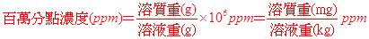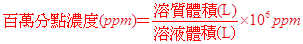 (11) 注意事項:百萬分點濃度適用於極稀薄的溶液,因此溶液的密度可視為1 g/cm3。 |