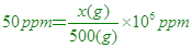 ∴需要氯氣(Cl2)= 例題24.某稀薄溶液(比重1.00)中含鈣離子濃度50ppm,則該溶液 解答 :(D) 解析 :溶液重量=500x1=500克 例題25.某罐250毫升的鋁箔包奶茶(比重=1.00)包裝上,標示含咖啡因300 ppm,代表一罐奶茶中約含有多少克咖啡因? 解答 :(B) 解析