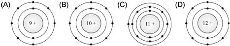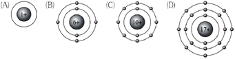 下列各選項中,何者是鈍氣的電子組態模型圖? 【答案】:(C) 【解析】:鈍氣的電子組態,除氦(原子序2)在K層有2個電子外,氖(Ne,原子序=10)、氬(Ar,原子序=18),(A)原子序=1,為H離子;(B)原子序=6,為C原子;(D)原子序=17,為氯離子。 ( )8.