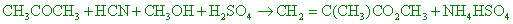 綠色化學的概念強調化學製程中原子使用效率,若製程中使用很多原子,最後這些原子卻成為廢棄物,就不符合綠色化學的原則。原子使用效率定義為:化學反應式中,想要獲得的產物的莫耳質量(分子量)除以所有生成物的莫耳質量(分子量)。甲基丙烯酸甲酯是一個製造壓克力高分子的單體,以往是由丙酮製造,完整製程可用下列平衡化學反應式表示: 【答案】:(C) 【解析】: ( )19.