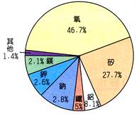 岩石圈與地殼 (1)岩石圈包括【地殼】及一部分【上部地函】。 (2) (3)海洋地殼較【薄】,平均約【7】km,組成密度較【大】,以【玄武岩】為主。 (4)【氧】為地殼最主要的成分,占地殼總質量將近一半;在地球的【水圈】、【氣圈】和【岩石圈】中,氧含量相當豐富。 (5)地殼中含量第二位的元素是【矽】,含量占地殼總質量四分之一,而矽和氧占地殼總質量約3/4,因此地殼物質中以含【矽酸鹽】類礦物最為常見。 (二)地球的來源: