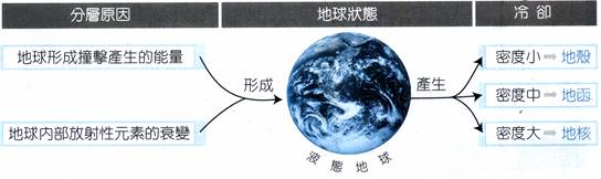 固體地球的組成物質由最初熔融狀態演化成目前具多層圈的構造。下列有關各層圈形成的敘述,何者正確? 【答案】:【A】 【解析】: ( )11.