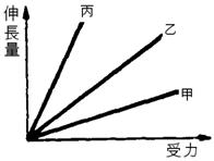 甲、乙兩彈簧的伸長量與外力間的關係如圖,則: (1)
