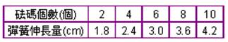 設懸掛a克砝碼時,全長為b公分,則a與b關係式為【b= 【解析】:掛 8.