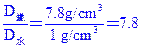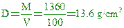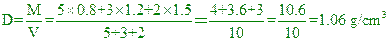 D=6÷3= 例5. 將 (1)混合液的體積為__________cm3; (2)混合液的密度為__________g/cm3。 【解析】: