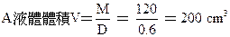 混合質量M = A液體質量+B液體質量 = 120+480=