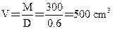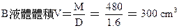 混合體積V = A液體體積+B液體體積 = 200+300=