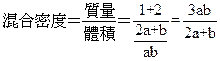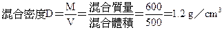 將兩物質混合,混合密度=總質量 ÷ 總體積。 (2)