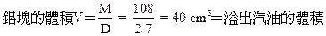 (2) 溢出油的質量為_________公克。 【解析】: 密度=質量÷體積