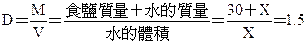 將兩物質等體積混合時,混合密度=密度的平均值(相加除以2)。 (4)