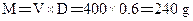 混合質量 = 水的質量 + 酒精質量=200+240=