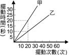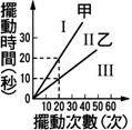 ( )108. 小強做擺的實驗,他設計了兩個擺,實驗後,將擺動次數和時間繪製如圖,則下列敘述何者正確?