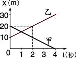 (A)若甲向西運動,則乙向東運動 (B)乙物體的位置與時間關係為X=10+10t (C)甲物體速度的大小為5m/s (D)甲、乙兩物體1秒時在原點正方向15公尺處相遇。