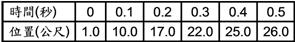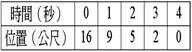 ( )26. 物體在直線上朝同一方向運動,其位置與時間的關係如右表,此物體在0∼4秒內的平均速度為: