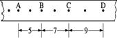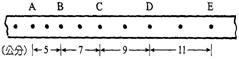 ( )34. 滑車實驗利用打點計時器,打點紙帶如右圖,已知振動器頻率10次/秒,點間距離單位用公分,其加速度大小?