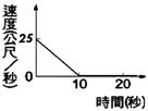 ( )142. 某車在筆直的公路上行駛,由速度為25m/s開始減速,其車速與時間關係如右圖,則由0∼10秒,此車共行駛多少距離?