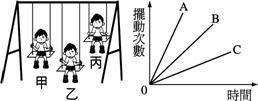 ( )110. 甲、乙、丙三位同學下課盪鞦韆,如右圖(a)所示,老師測量後,畫出每位同學的擺動次數-時間圖,如右圖 (B),則以下配對何者正確?