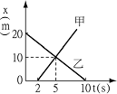 (A)X=10+10t (B)X=10+20t (C)X=10+5t (D)X=5+10t。