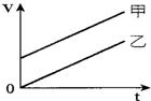 ( )120. 甲、乙兩車沿直線運動,其速度-時間關係為兩平行線,如右圖,則何者加速度較大?