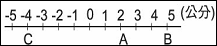 ( )129. 有隻螞蟻由下圖中的A點爬到B點,再由B點爬到C點,則螞蟻的總位移量與總路徑長各為多少公分?