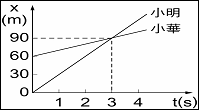 (A)兩人出發地點相同 (B)3秒內,兩者的平均速度相同 (C)3秒時,兩人相遇 (D)3秒時的瞬時速度,小明<小華。